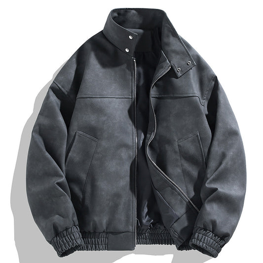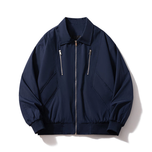 Retro Coach Jacket Men's Teenager Solid Color Turn-down Collar Short Autumn Workwear Black